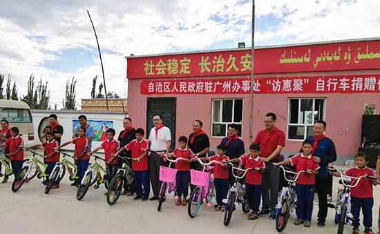 除了以科技的方式外,佳都科技還在教育、環保、文化、扶貧等很多領域積極參與援疆行動,全方位助力建設美麗新疆。據悉,近期在佳都科技的大力支持與配合下,新疆維吾爾自治區人民政府駐廣州辦事處在英阿瓦提鄉托普恰克(10)村舉行了一場簡單而隆重的“訪惠聚”自行車捐贈儀式,給該村小學和初中的孩子們送去了百輛自行車,為學生們拉近了家與學校的距離,也圓了百名學生的單車夢。
